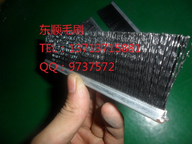 可植線徑::PA、PBT、PE、PP、PVC(刷絲顏色可按客人要求:磁白色,透明白,黑色,金黃色等),最大Ф1.2 mm,鋼絲、銅絲類最大Ф0.5 mm,動(dòng)植物毛類最大1.5 mm。(使用PA或PP絲,耐溫度70°C以上,耐堿度2.5%。)毛刷長(zhǎng)度: 20mm(最短)、1000mm、1200mm、1500mm、2000mm、5000MM、 10000mm(最長(zhǎng))等 鋼帶底厚:最小2.5mm(最?。?mm,3.5mm,4mm,4.5mm,5mm---------12mm(最厚)鋼帶側(cè)高:比如3*3(3mm厚*3mm側(cè)高)亦可做做3*4(3mm厚*4mm側(cè)高),5*5(5mm厚*5mm側(cè)高)亦可做做5*5(5mm厚*7mm側(cè)高)。