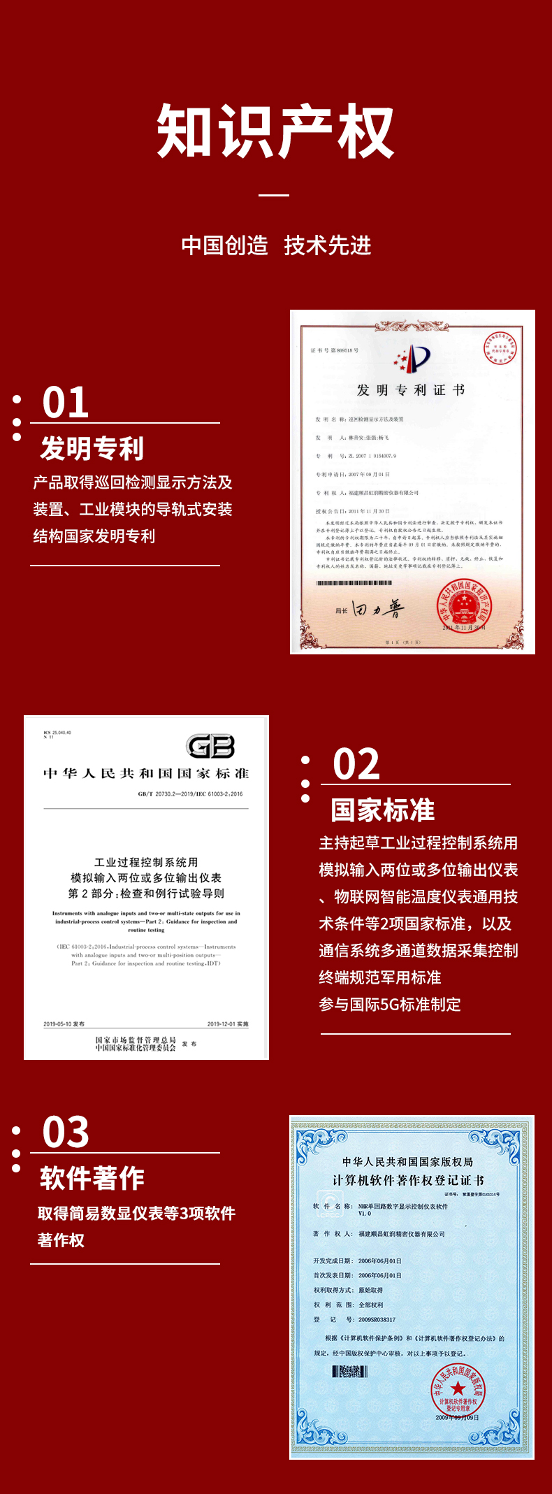 虹潤公司是專業(yè)生產(chǎn)數(shù)顯表的國家專精特新“小巨人”企業(yè),生產(chǎn)的導(dǎo)軌式數(shù)顯儀表,具有全切換信號輸入,導(dǎo)軌壁掛共用,全隔離設(shè)計(jì),高抗干擾,變送輸出或RS485通訊等特點(diǎn)。產(chǎn)品獲得巡回檢測顯示方法及裝置、工業(yè)模塊的導(dǎo)軌式安裝結(jié)構(gòu)等2項(xiàng)國家發(fā)明專利,主持起草工業(yè)過程控制系統(tǒng)用模擬輸入兩位或多位輸出儀表、物聯(lián)網(wǎng)智能溫度儀表通用技術(shù)條件等2項(xiàng)國家標(biāo)準(zhǔn),,以及通信系統(tǒng)多通道數(shù)據(jù)采集控制終端規(guī)范軍用標(biāo)準(zhǔn),參與國際5G標(biāo)準(zhǔn)制定,取得簡易數(shù)顯儀表等3項(xiàng)相關(guān)軟件著作權(quán)。產(chǎn)品廣泛應(yīng)用于電力、石化、冶金、化工、造紙、食品、輕工、制藥、熱處理、水處理、機(jī)械配套等各種工業(yè)現(xiàn)場。