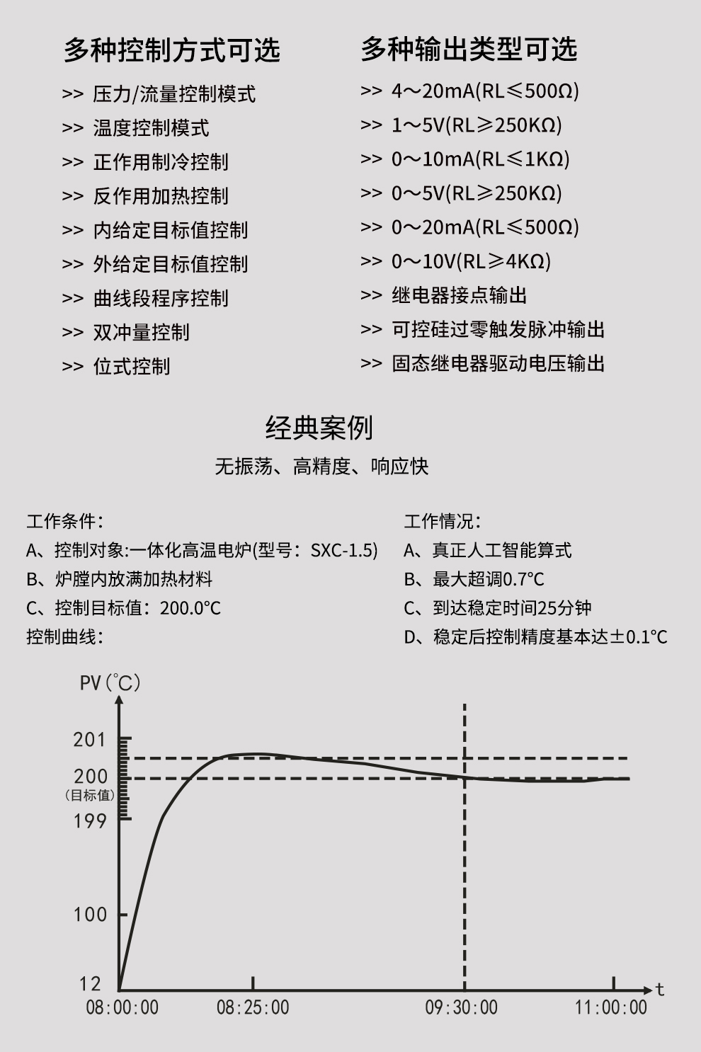虹潤公司是專業(yè)生產(chǎn)溫控器的國家專精特新“小巨人”企業(yè)。生產(chǎn)的彩色調(diào)節(jié)無紙記錄儀,具有8路PID獨(dú)立控制,真正人工智能算式,無需人工整定參數(shù),控制精度達(dá)士0.1°C,支持以太網(wǎng)/RS485通訊輸出等特點(diǎn)。產(chǎn)品獲得智能化控制器、人工智能調(diào)節(jié)器及調(diào)節(jié)方法、模糊PID控制儀及控制方法、一種平板無紙記錄儀、巡回檢測顯示方法及裝置等5項(xiàng)國家發(fā)明專利,主持起草物聯(lián)網(wǎng)智能記錄儀表通用技術(shù)條件、物聯(lián)網(wǎng)智能溫度儀表通用技術(shù)條件、工業(yè)過程測量和控制系統(tǒng)用智能調(diào)節(jié)器等3項(xiàng)國家標(biāo)準(zhǔn),通信系統(tǒng)多通道數(shù)據(jù)采集控制終端規(guī)范軍用標(biāo)準(zhǔn),以及空間數(shù)據(jù)與信息數(shù)據(jù)傳輸系統(tǒng)等2項(xiàng)航天標(biāo)準(zhǔn)。參與國際5G標(biāo)準(zhǔn)制定,取得液晶數(shù)據(jù)采集無紙記錄儀等4項(xiàng)相關(guān)軟件著作權(quán)。產(chǎn)品廣泛應(yīng)用于電石化、工業(yè)爐、試驗(yàn)設(shè)備、注塑機(jī)械、包裝機(jī)械等需要對現(xiàn)場溫度進(jìn)行監(jiān)測控制的行業(yè)。
