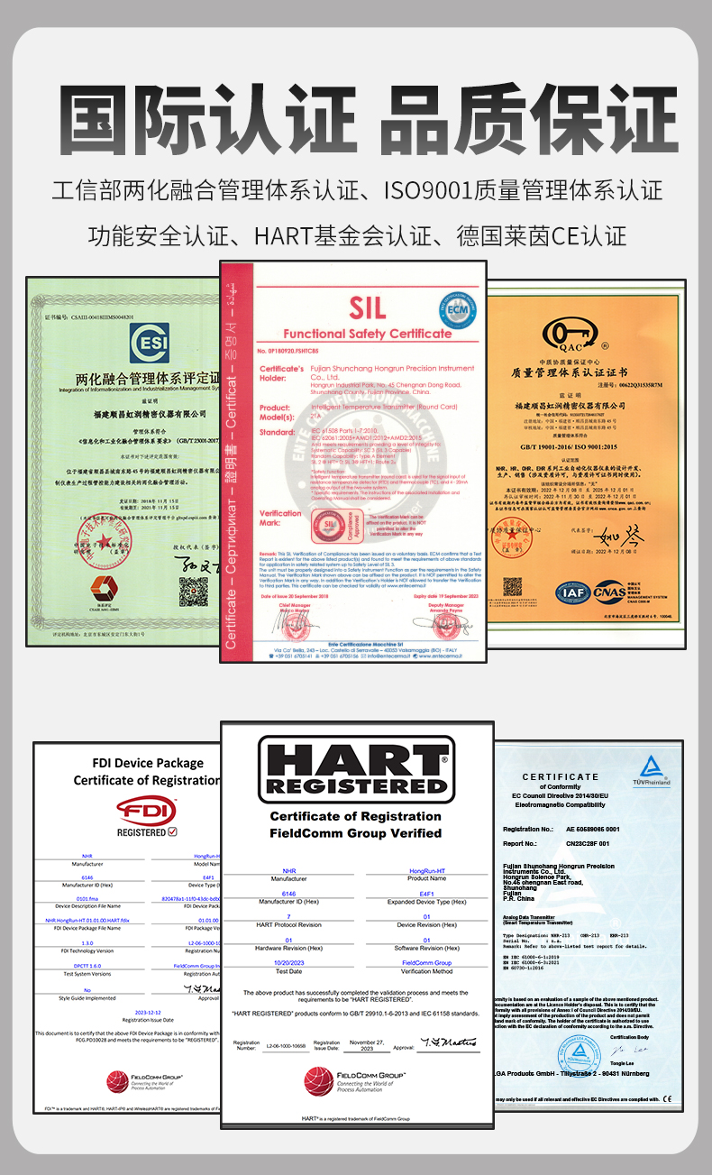 虹潤公司是專業(yè)生產(chǎn)溫度變送器的國家專精特新“小巨人”企業(yè)。生產(chǎn)的溫度變送器,具有采用磁隔離技術(shù),配套編程器可修改參數(shù),抗干擾能力強(qiáng),穩(wěn)定性好,帶RS485或HART通訊等特點(diǎn)。該產(chǎn)品不僅通過HART基金會(huì)認(rèn)證、德國萊茵 CE 認(rèn)證與 SIL 功能安全認(rèn)證,還獲得具備減震抗干擾能力的溫度變送器、信號(hào)隔離器、一種二端子模塊、無源信號(hào)隔離器等4項(xiàng)國家發(fā)明專利,主持起草物聯(lián)網(wǎng)智能溫度儀表、現(xiàn)場設(shè)備工具(FDT)接口規(guī)范、工業(yè)過程測量和控制系統(tǒng)用溫度變送器等3項(xiàng)國家標(biāo)準(zhǔn),以及通信系統(tǒng)多通道數(shù)據(jù)采集控制終端規(guī)范軍用標(biāo)準(zhǔn),參與國際5G標(biāo)準(zhǔn)制定,取得溫度變送器等5項(xiàng)相關(guān)軟件著作權(quán)。產(chǎn)品廣泛應(yīng)用于石油、電力、化工,冶金、制藥、紡織、橡膠制造等工業(yè)領(lǐng)域現(xiàn)場自動(dòng)化測溫過程。
