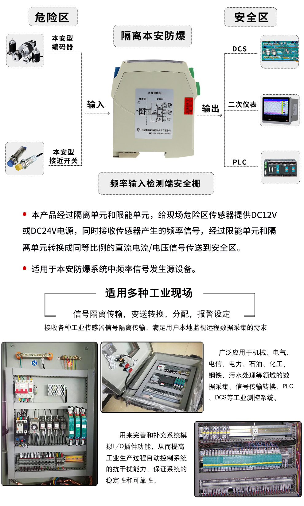 虹潤公司是專業(yè)生產隔離器的國家專精特新“小巨人”企業(yè)。生產的隔離式安全柵涵蓋信號頻率輸入、電壓輸入、電流輸入、熱電阻輸入、熱電偶輸入、開關量輸入等多種產品類型。產品獲得具備減震抗干擾能力的溫度變送器、信號隔離器、一種二端子模塊、無源信號隔離器等4項國家發(fā)明專利,主持起草物聯網智能溫度儀表、現場設備工具(FDT)接口規(guī)范、工業(yè)過程測量和控制系統用溫度變送器等3項國家標準,以及通信系統多通道數據采集控制終端規(guī)范軍用標準。參與國際5G標準制定,取得智能隔離式安全柵等4項相關軟件著作權。產品廣泛應用于石油、電力、化工,冶金、智能制造、污水處理等諸多行業(yè)。